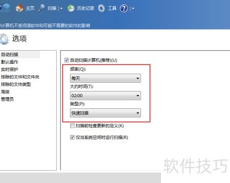 8、 勾选右侧推荐的自动扫描计算机选项,设定扫描频率与更新时间。