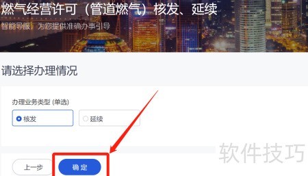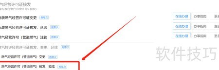 2、 在部门服务事项中选取管道燃气经营许可的核发与延续办理。