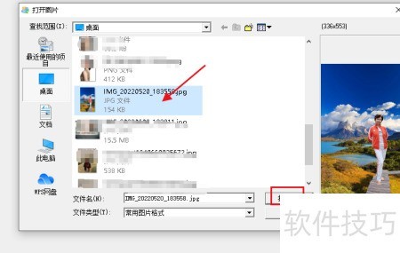 2、 在电脑中选图片后点击打开即可。
