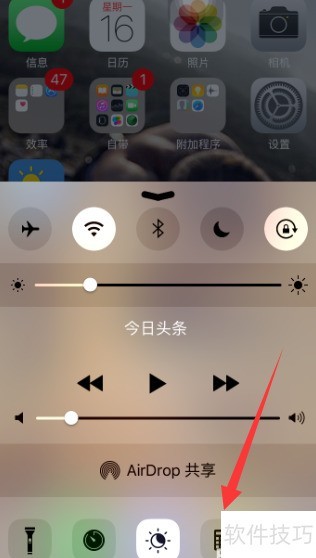 1、 打开手机下拉菜单,点击进入计算器应用。