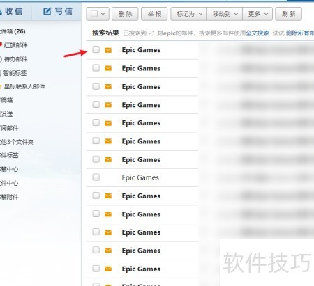 7、 搜索结果将展示与查询内容相关的全部邮件。