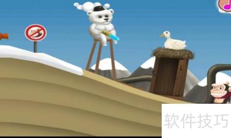 5、 猴子跃上高凳,顺势翻倒,轻松过关,所示。