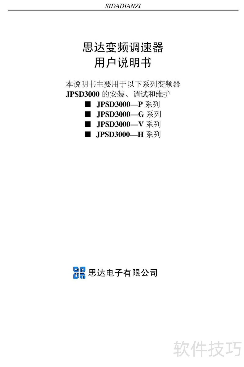 、 本书为思达JPSD3000-P系列变频调速器的使用指南,详细说明产品操作方法及常见故障处理方案,帮助用户正确高效地使用设备。