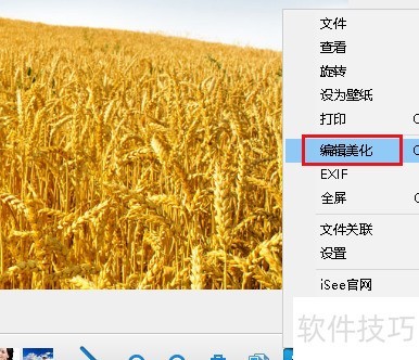 1、 打开看图精灵,选中图片后点击菜单,进入编辑美化功能进行处理。