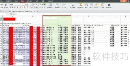 3、 打开WPS,把前几天的数据整理进一张表格,筛选出重复的IP和地区,并将其高亮标注。