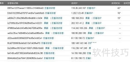 4、 当同一IP或访问标识码频繁访问网站,且每次停留时间极短、仅浏览单页时,应考虑将其屏蔽。可通过仅看该IP或仅看该访客功能,查看其访问频率,判断是否存在异常行为,从而采取相应限制措施,保障网站正常运行与数据安全。