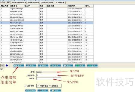 12、 在已阻击名单页面下方,点击新增,输入需阻击的访客序号、IP地址并保存。白色表示未阻击,红色表示已阻击。