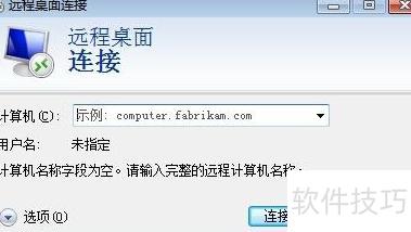 3、 在界面左下角点击选项,展开后会出现用户名输入框。在远程桌面连接窗口的计算机栏右侧,输入服务器IP地址,例如120.121.1.25。用户名栏填写administrator(通常默认为此名称,除非已更改)。设置完成后,点击下方的连接按钮即可开始连接。