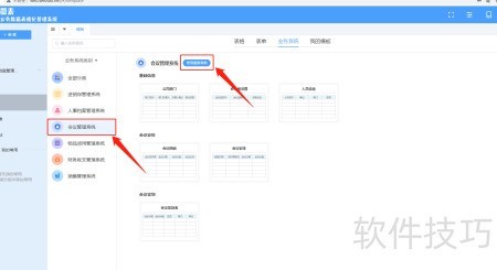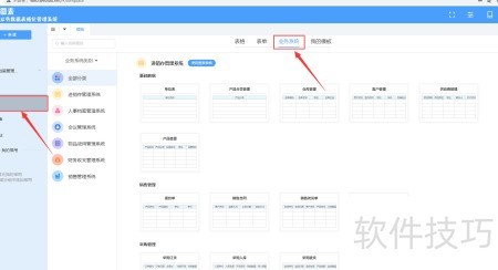 2、 在右侧菜单栏点击模板,然后从弹出页面选择业务系统。