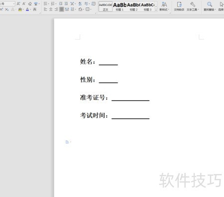 1、 打开用于制作准考证的Word格式模板文件。