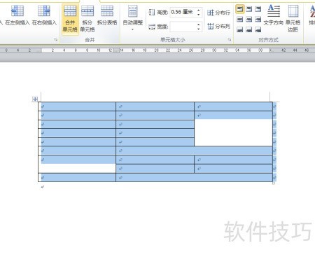 2、 接下来,页面上已生成一个3列9行的表格。此时需调整内容布局,对必要单元格进行合并。建议先在纸上绘制准考证样例,明确哪些区域需要合并,以便操作时更清晰。进入表格工具,选中目标单元格后,点击单元格合并功能即可完成合并,使表格结构更符合实际需求,提升整体排版效果。
