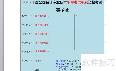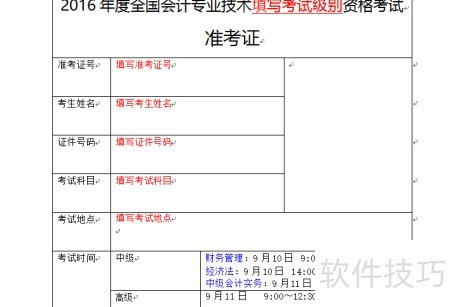通常考试时每位考生都会拿到一张准考证,这类证件多由老师手动在Word中制作,如中考、高考等。今天就以初级会计实务考试为例,介绍如何快速制作一份简洁的准考证模板。只需打开Word 2010,按照规范布局设置信息栏位,包括姓名、考号、照片位置、考试科目等内容,即可完成基础模板设计,方便后续批量生成与打印。