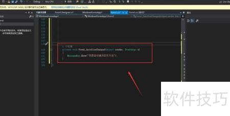 3、 最后点击AutoSizeChanged,进入代码界面,在该方法中编写自动遍历界面控件的代码,所示,立即动手尝试一下吧。