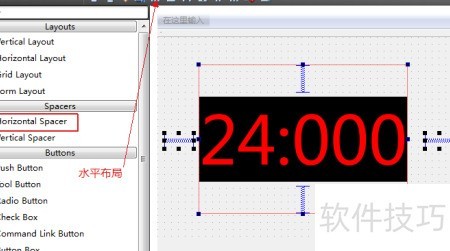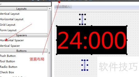 2、 在控件上下各添加一个竖直弹簧,同时选中这三个元素,点击竖直布局按钮,最终效果如右图所示。