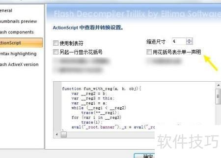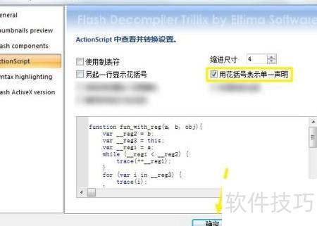 Flash反编译器中用花括号表示单条语句的方法详解,帮助理解代码结构与语法特点。