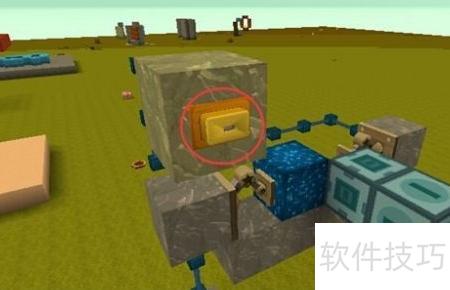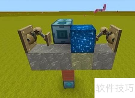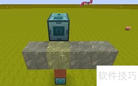 7、 在滑动方块后方下一格处横向放置四块天然岩石,用于安装机械臂与红石块,以此调控滑动方块的通电状态。