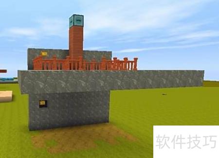 17、 最后进行美化处理,用岩石墙将电梯的电路与搭乘区域分隔开,并在二楼搭建一个平台作为地板,该平台需使用如岩石等自然生成的方块完成。