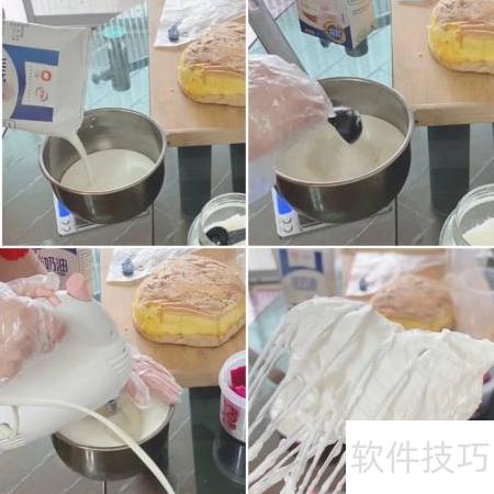 3、 取30克白砂糖加入100毫升淡奶油中,搅拌均匀后进行打发即可。