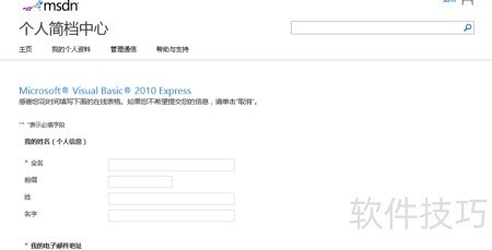 3、 VS会自动启动浏览器并跳转至MSDN个人资料页面,供你填写相关信息。