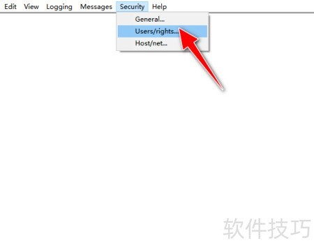 3、 进入系统后点击安全菜单,随后选择用户权限选项进行设置。
