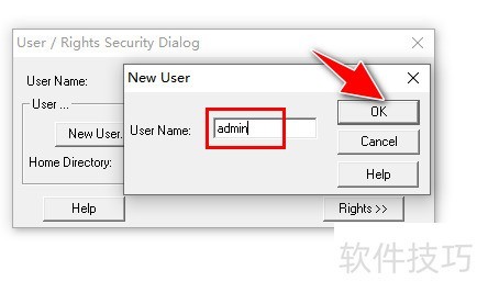 5、 打开添加用户对话框,输入用户名后点击确定按钮完成操作。