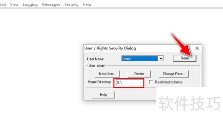 7、 设置FTP主目录路径后,点击权限按钮配置目录操作权限,确认无误后点击完成按钮,使设置生效。