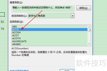 4、 在插入函数对话框的函数列表中,选取所需的函数即可。
