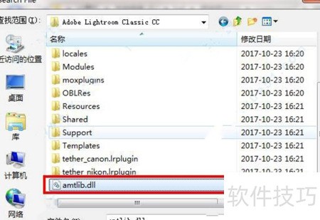 6、 随后弹出窗口,需定位安装目录中的amtlib文件以应用破解补丁。
