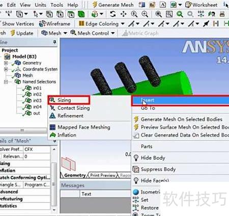 8、 将细化面尺寸设为4mm,可根据需求调整。网格越密,计算精度越高,但相应地会增加资源消耗和计算时长。