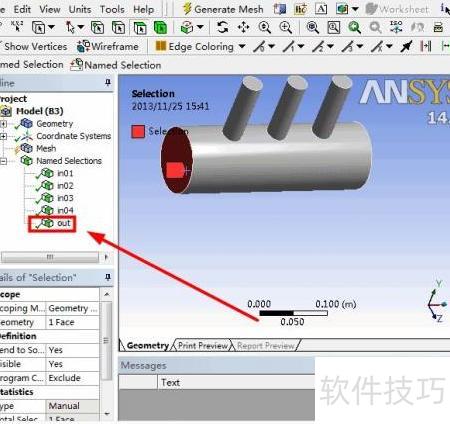 3、 将出口命名为out,完成出口面创建,效果所示。