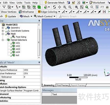 9、 选择Mesh选项进入网格划分模式,点击上方Update按钮完成更新操作。