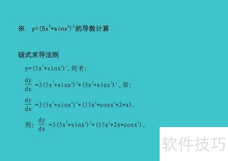 1、 本文利用链式法则、对数求导法以及幂函数和三角函数的求导公式,重点阐述当n取1、2、3时,复合函数y=(5x^n+sinx^2)^3的导数计算过程与关键步骤。