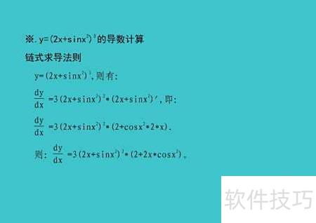 2、 先对外层幂函数求导,再乘以内层函数的导数,逐层应用链式法则。