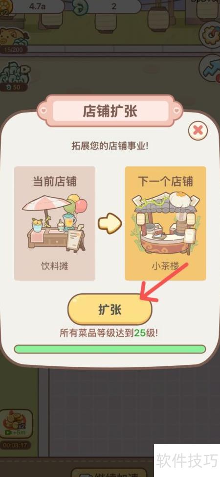2、 进入店铺,点击下方按钮进行扩展