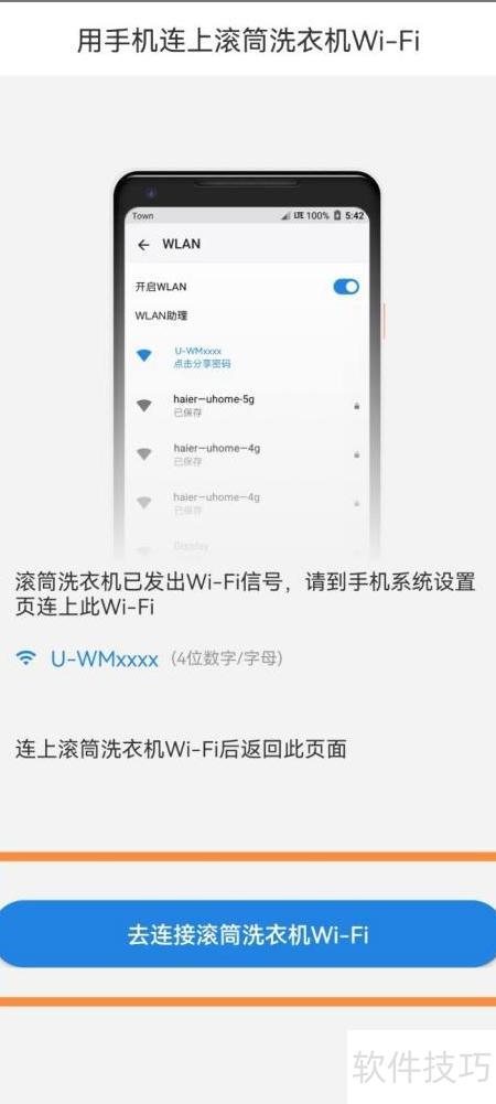 7、 请连接滚筒洗衣机的Wi-Fi网络。
