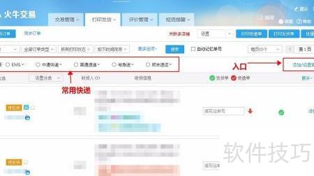 2、 在千牛插件中打开软件,选择批量打印发货,点击添加/设置常用快递进入配置页面。