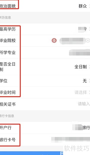 5、 补充学历及银行卡相关信息