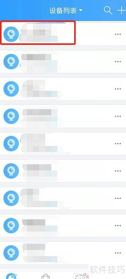 1、 打开手机中监控摄像头厂商的APP,进入设备列表并选中相应设备。