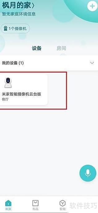 1、 打开手机上的监控应用,进入米家界面,通过该平台调节并旋转摄像头角度,实现远程操控。