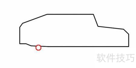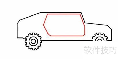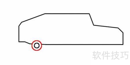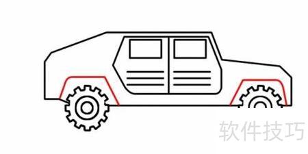 7、 以梯形线条与弧线相接,描绘轮子表面的凹陷轮廓。