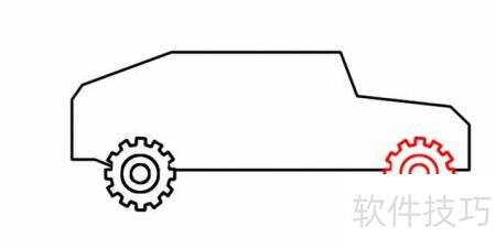 2、 先绘制左侧轮子,画一个较小的圆紧贴底盘线,再在其外围添加一个更大的同心圆,最后将外圈修饰成齿轮状,完成轮子的绘制。