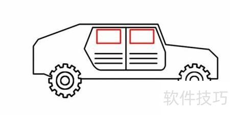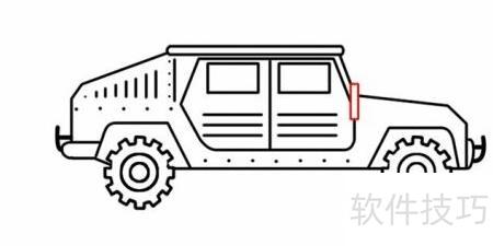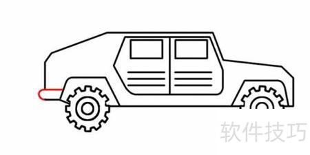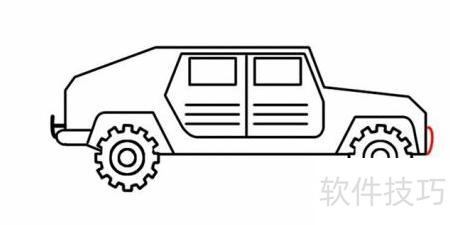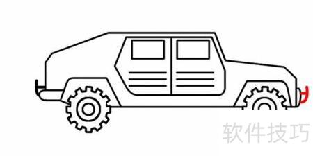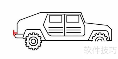 5、 用三条横线在车身左右两侧分别勾勒出纹路。