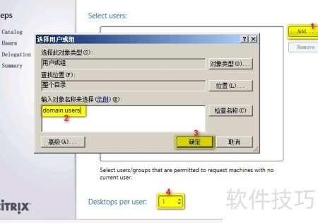 12、 设置可使用该Catalog桌面的用户及每人可同时开启的桌面数量。