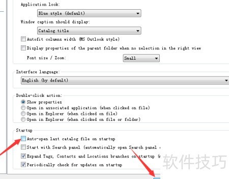 2、 取消勾选启动时自动打开最近的目录文件选项即可。