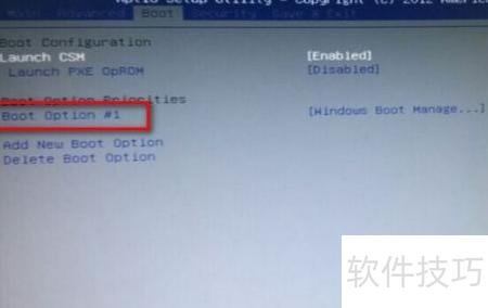 8、 重启计算机,启动时按下F2键进入BIOS设置界面。以华硕电脑为例,其他品牌操作类似。找到Boot选项,选中Boot Option 1,按回车键,选择之前插入的U盘作为启动设备即可。