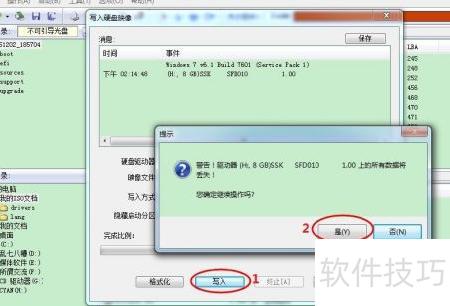 7、 点击写入后出现警告提示,选择是,等待操作完成即可。
