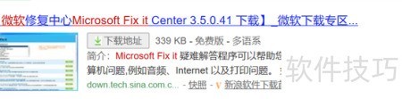 3、 搜索MicrosoftFixit后点击下载即可。