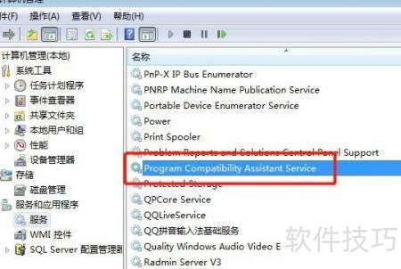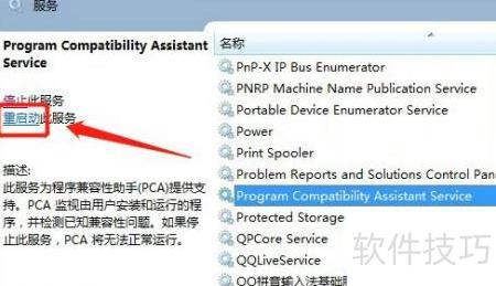 在Win7系统中,可通过服务管理器找到程序兼容性助手服务,右键选择重启,或先停止再启动该服务,确保系统以管理员权限运行操作。