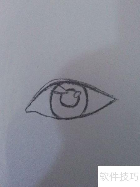 2、 描绘瞳孔边缘,画个小圆圈,注意预留高光位置
