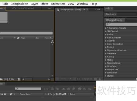 1、 启动AE软件,进入操作界面,具体所示。